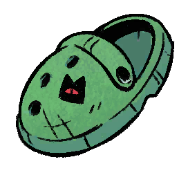- He is barefoot, but apparently wears green crocs with a little black crown shoe charm.