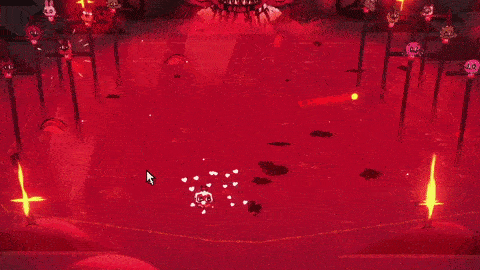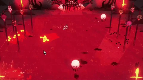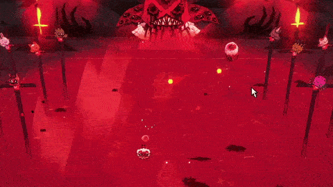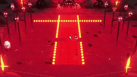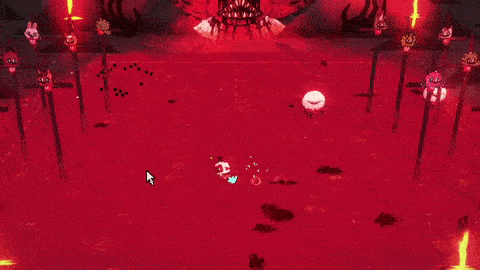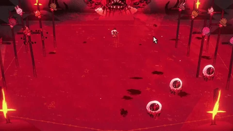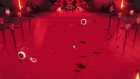 Fireball Circle Pattern: Narinder will teleport to one of the borders of the arena and will launch up to six large circle of fireballs at the Lamb. There is no delay before he executes this attack and because of how big the circles are, it can be risky to attack Narinder thanks to him teleporting away by the time the player gets to him. If one feels daring however, it is possible to dodge through the circle if it's timed well enough.