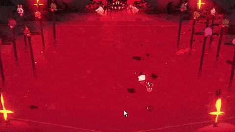 Line Chain Pattern: Narinder will teleport to one of the borders of the arena and will draw up to to three lines on the ground from where chains will erupt in the Lamb's direction. There is no delay before he executes this attack but thanks to how easy it is to avoid and approach Narinder while he is doing this attack, this will usually be the best time to damage him.
